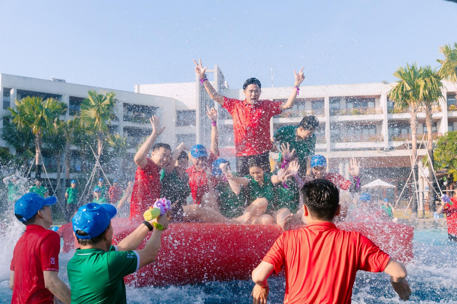 Pool Party là xu hướng Year End Party hiện đại, phù hợp với doanh nghiệp có đội ngũ nhân sự trẻ trung, năng động. Không gian hồ bơi kết hợp BBQ, cocktail và các trò chơi dưới nước tạo nên bầu không khí sôi động, thư giãn.